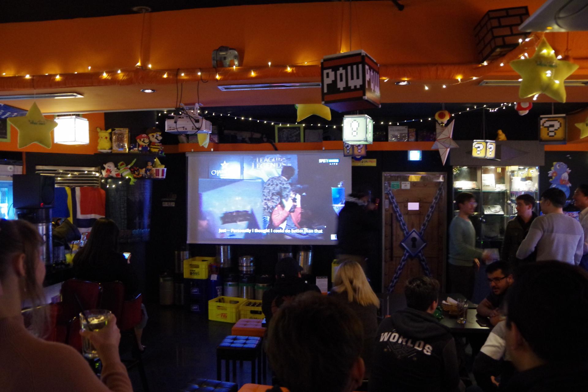 Finale de la LCK au Retro Bar GamingMalheureusement, cette finale avait lieu à Busan, au sud de la Corée du Sud. A l'inverse des occidentaux, les coréens préfèrent généralement regarder l'E-Sport seuls chez eux, au travail puis dans le train avant d'arriver à la maison. Le bar était donc assez peu rempli, et vide de séouliens. Africa Freecs a déjoué les pronostics en arrachant la première partie aux Kingzone Dragon, avant que ces derniers ne remportent haut la main les trois suivantes. En vrai, nous sommes partis à la fin du premier match.