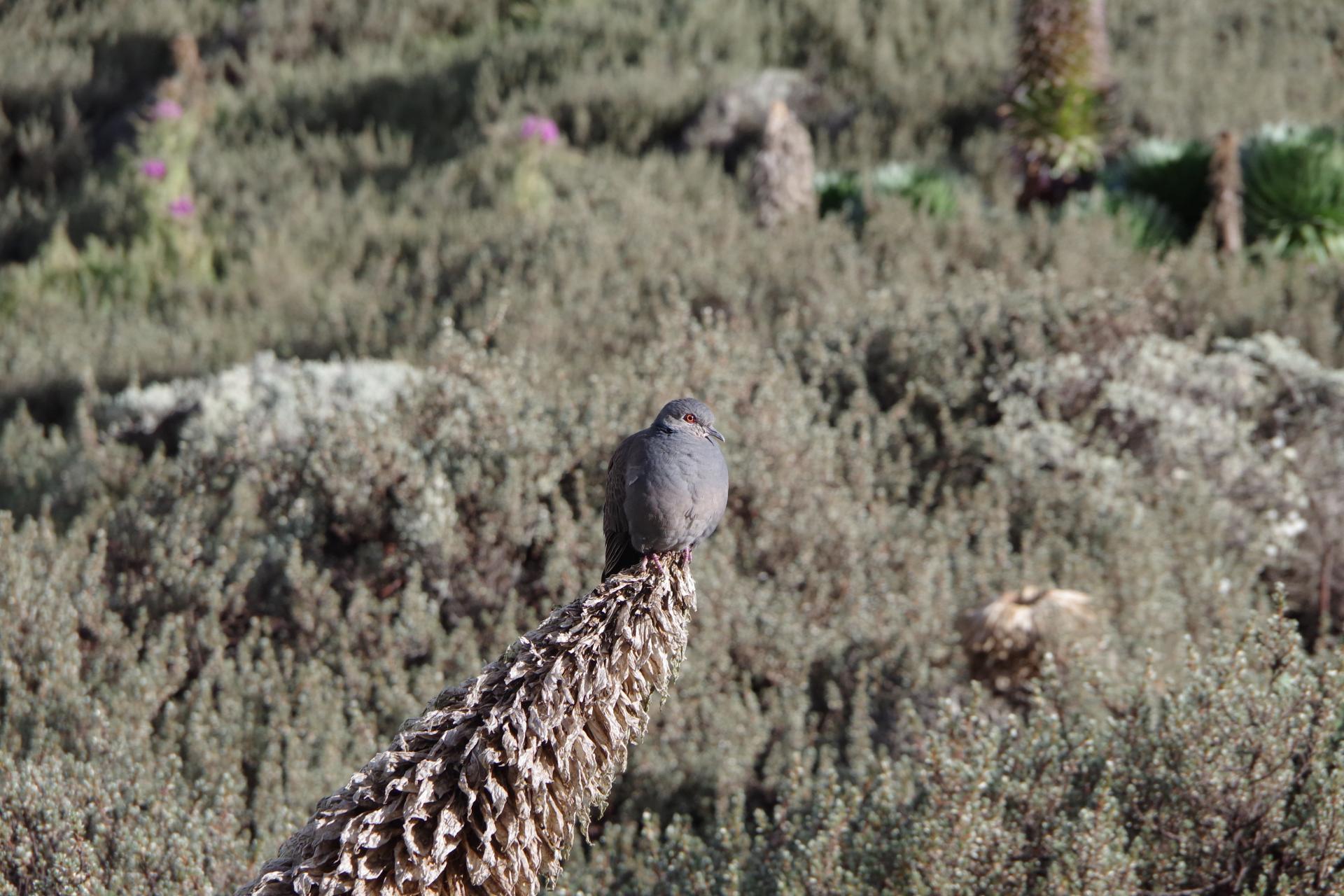 Vers l'est, le chemin continue à travers les landes du Kili, dans une atmosphère plus austère. Il y a de moins en moins de végétation. A la place, on trouve de l'oxydium (obsidienne), une roche volcanique, qui nous rappelle que nous sommes sur un volcan (même si la dernière éruption en date remonte à plus de 500 ans). Quelques chardons néanmoins, et autres plantes "défensives".